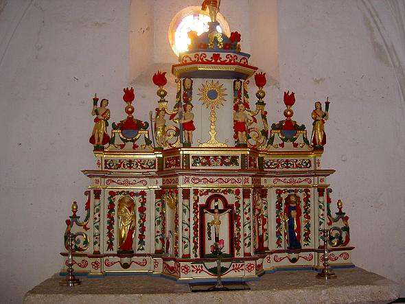 Une curieuse vierge noire en bois est abritée en l’église de Seigné. Mais aussi un superbe rétable ; menacé de destruction à St Maixent durant la Révolution, il a trouvé refuge non loin de là dans l’église Notre Dame de Seigné du XIIè, classée en 1969.