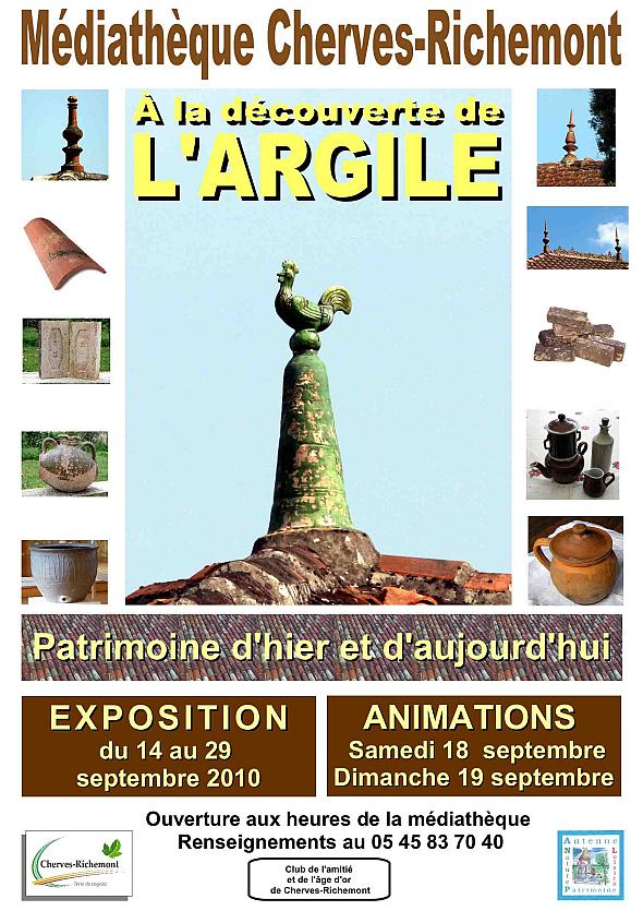 Une exposition magnifique à la médiathèque de Cherves du 16 au 25 septembre 2010 sur l’Argile patrimoine d’hier et d’aujourd’hui.