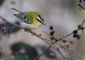 Très petit, il se différencie du roitelet huppé par son large sourcil blanc. La bande sur la calotte est orange chez le mâle, la femelle l’ayant plutôt jaune. La seconde photo à droite vient de Wikipedia.